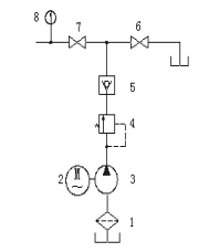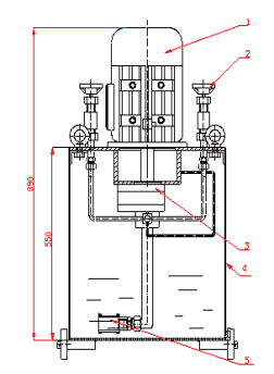1.電動(dòng)機(jī) 2.外螺紋角式截止閥 3.齒輪泵 4.油箱 5.網(wǎng)式濾油器